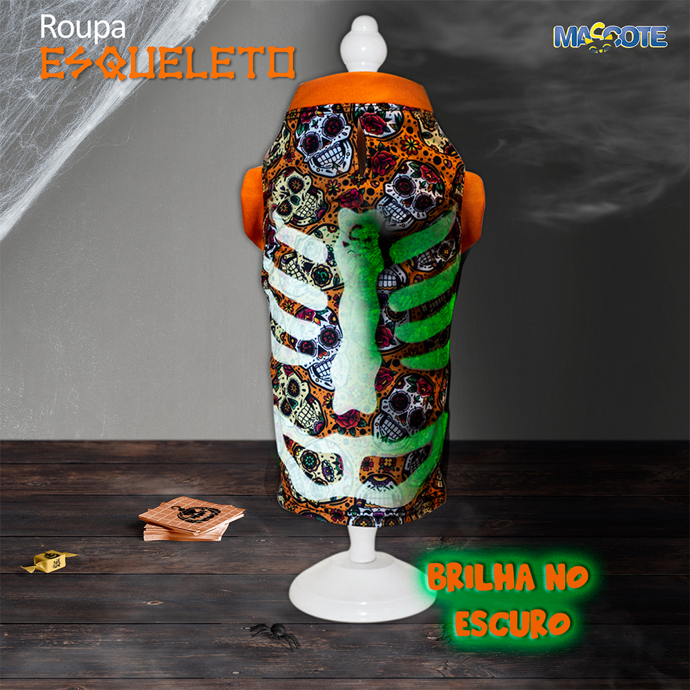 Ref 900 - Roupa Esqueleto Laranja - Brilha no escuro!