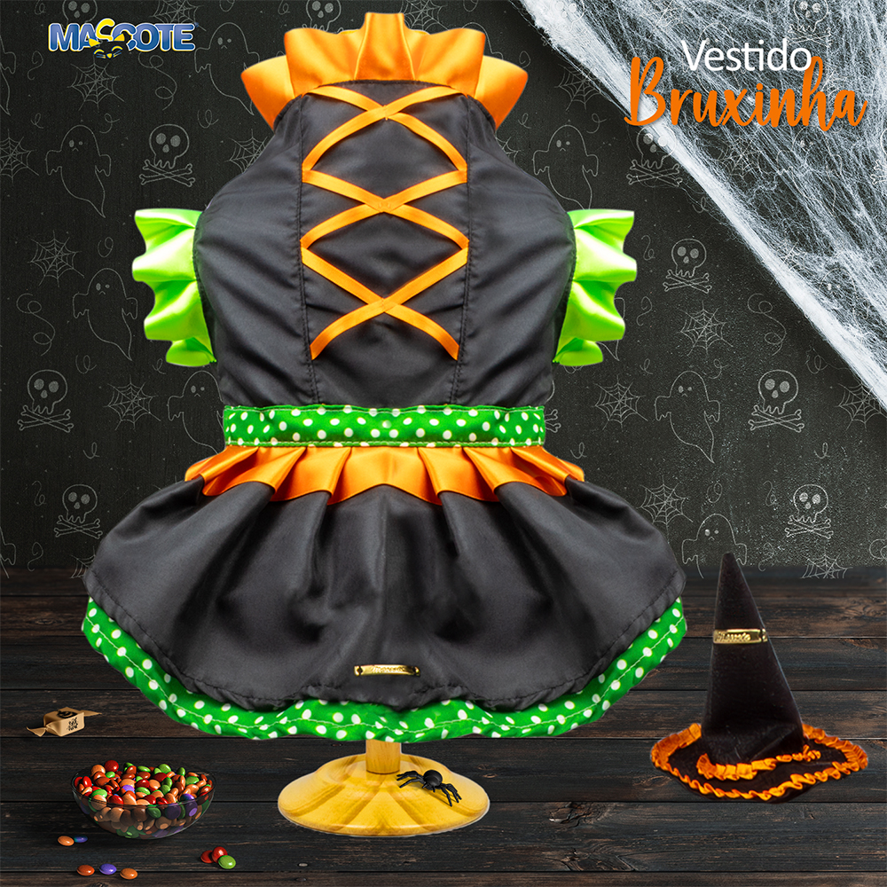 Confeccionado em cetim e tricoline com fitas de cetim. Fechamento em velcro. Acompanha Chapeú com presilha.