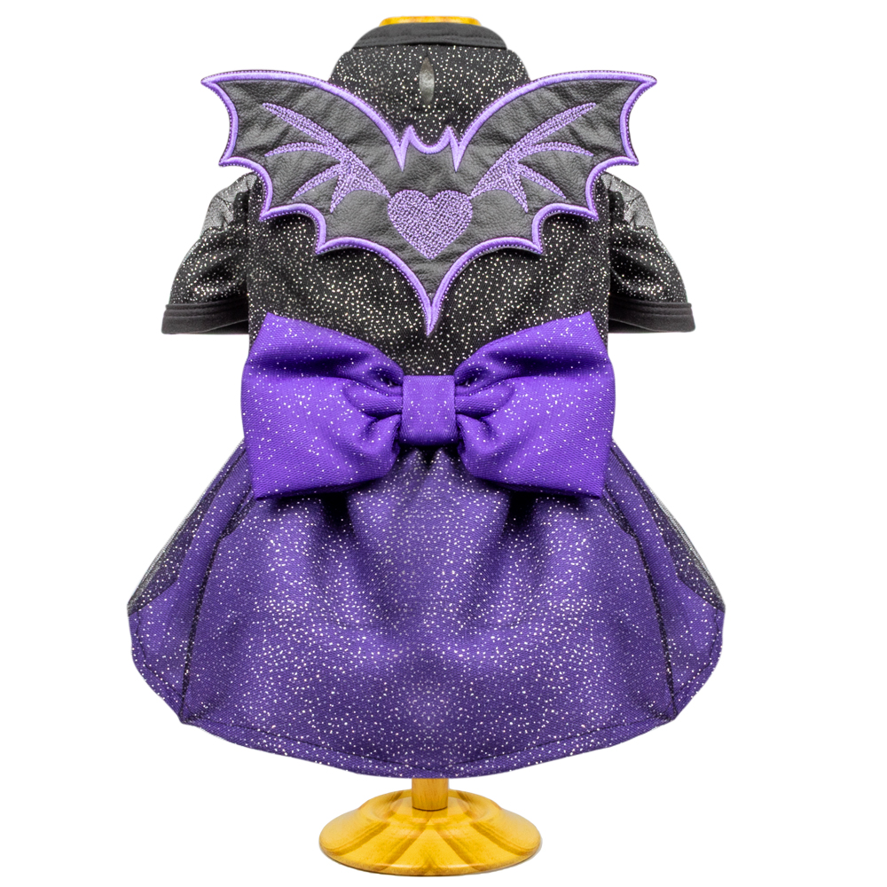 Detalhes em passa guia, laço e asa de morcego bordada em napa.